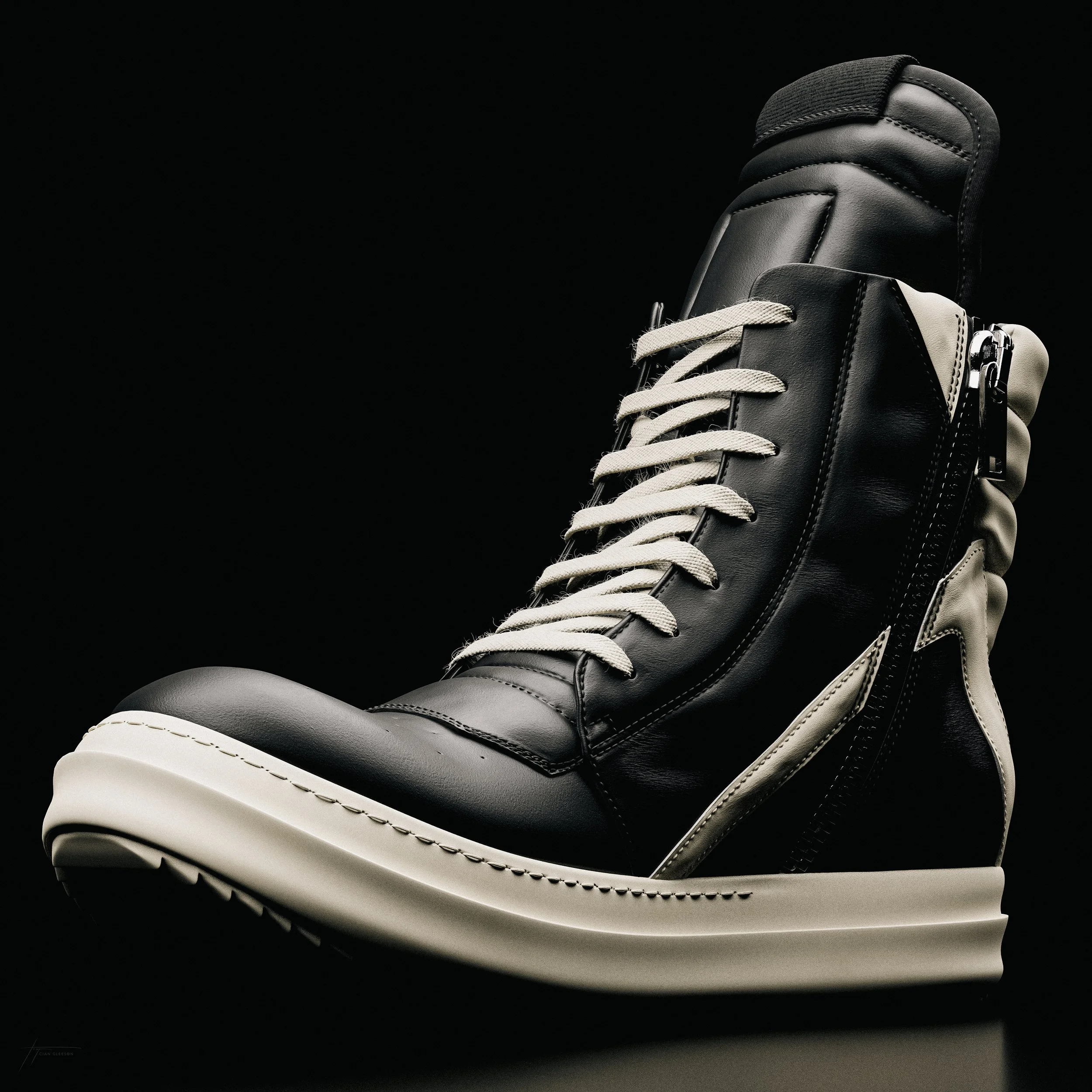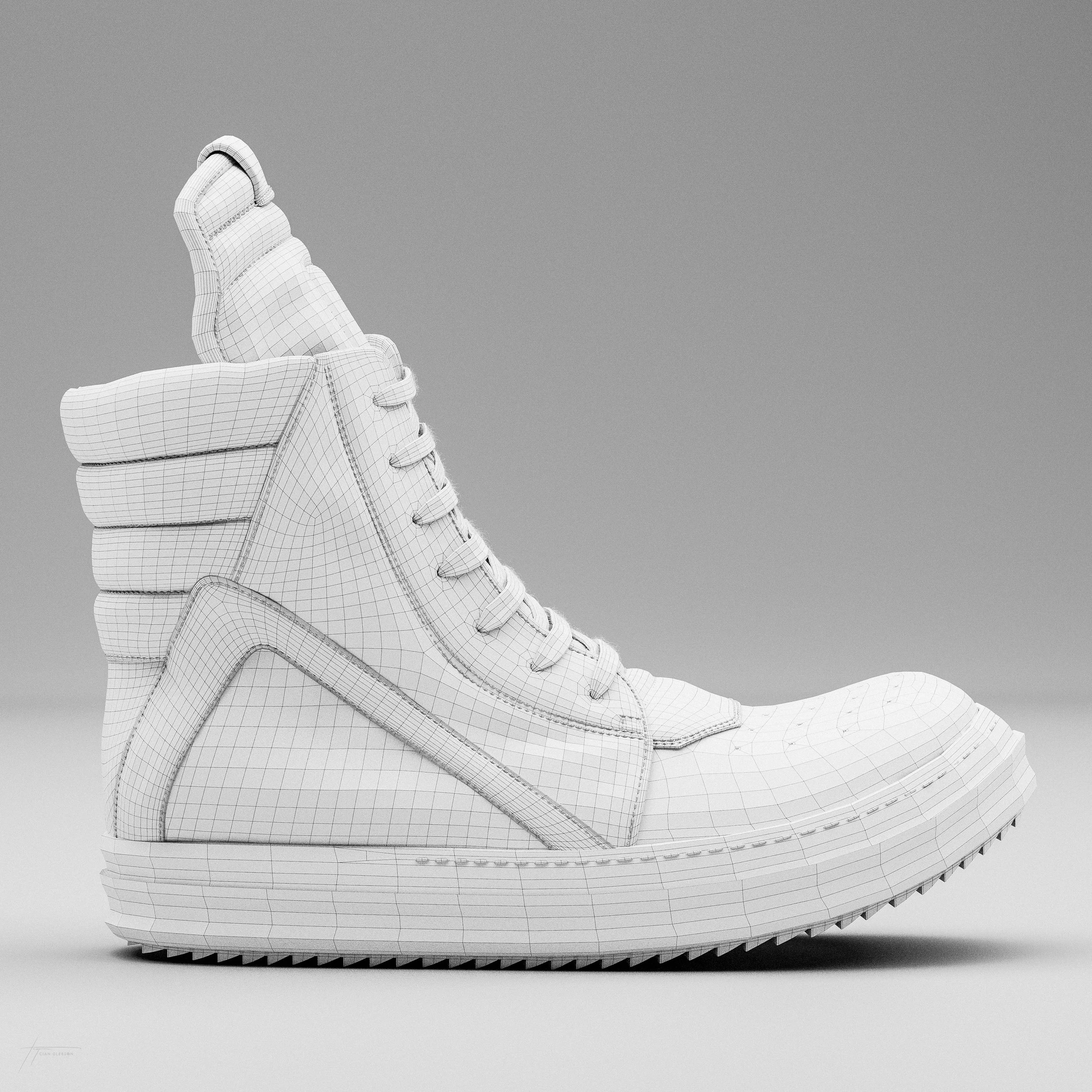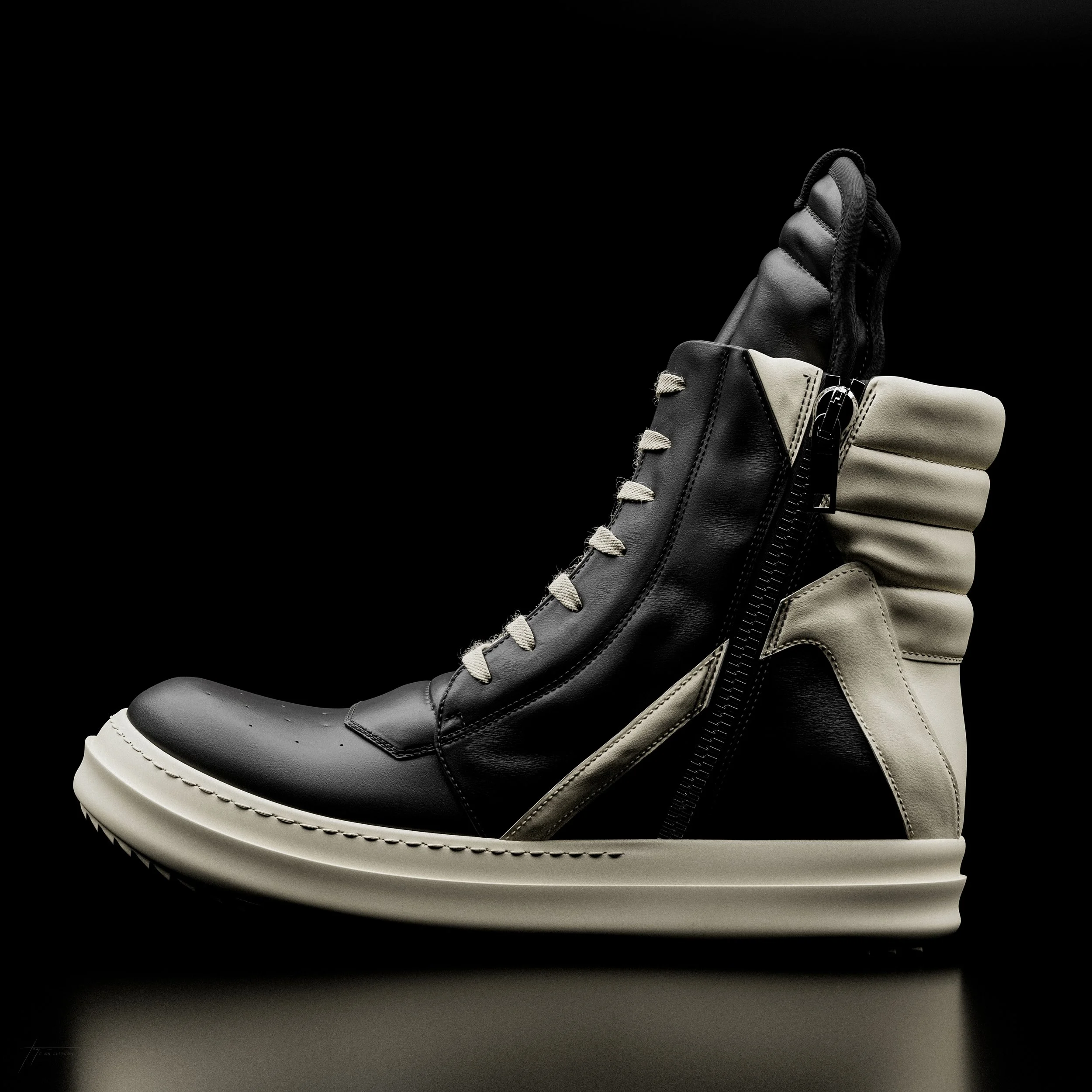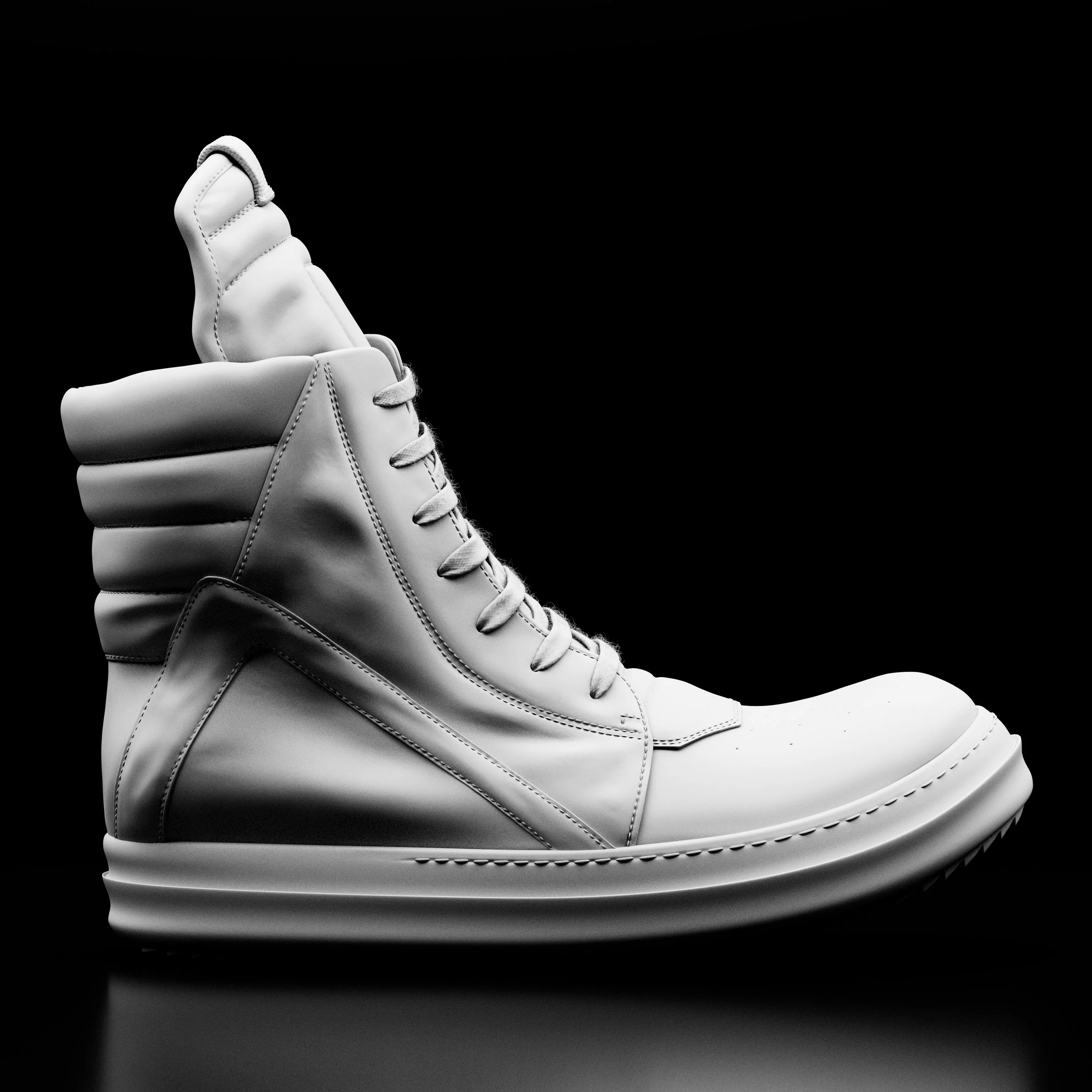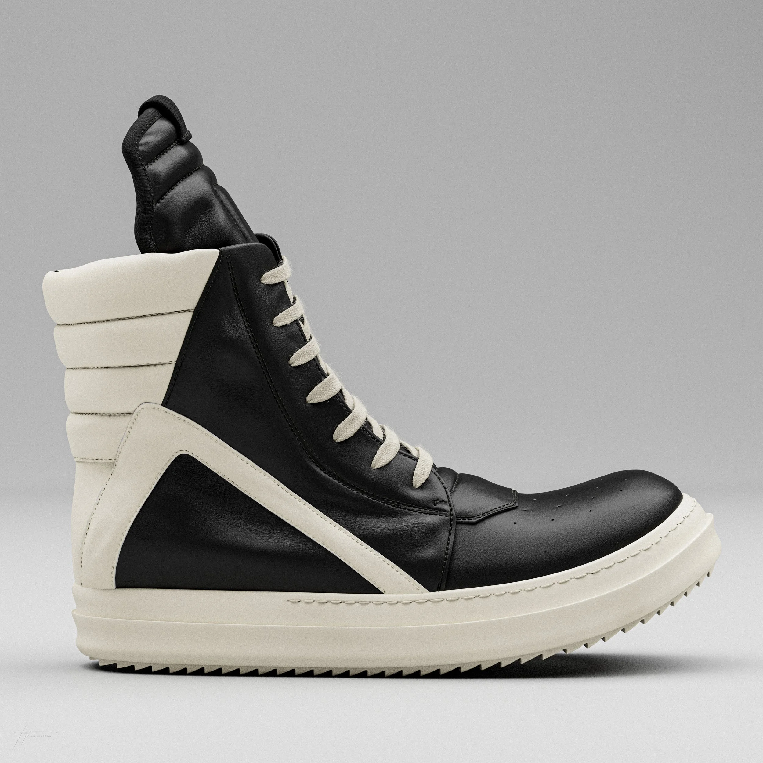 The Rick Owens Geobasket is a high-top sneaker known for its avant-garde design, oversized silhouette, and distinctive geometric panelling. Embodying Rick Owens' unconventional style, these luxury sneakers have become a coveted statement piece in the intersection of high fashion and streetwear.